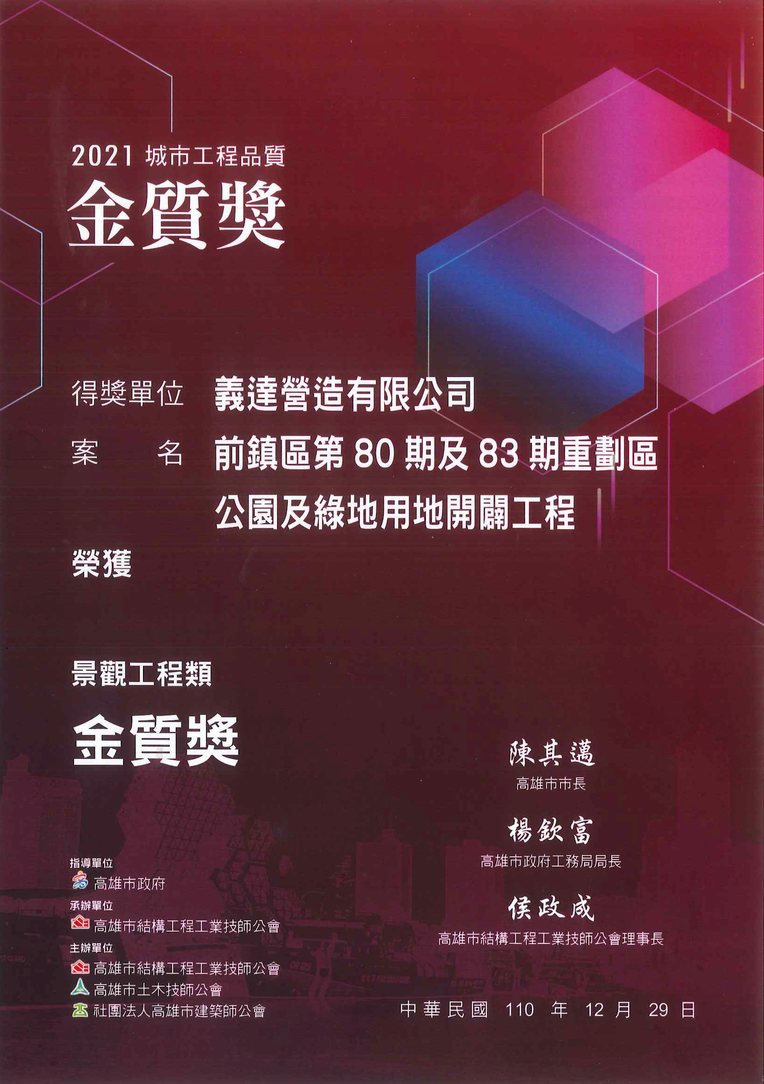 | 高雄市政府工務局養護工程處 | 前鎮區第 80 期及 83 期重劃區公園及綠地用地開闢工程 | ||